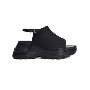 スニーカーソールとの融合により、快適な履き心地と歩行の安定性を実現しています。踵部分にはストラップが付いており、ホールド感の調整が可能です。
