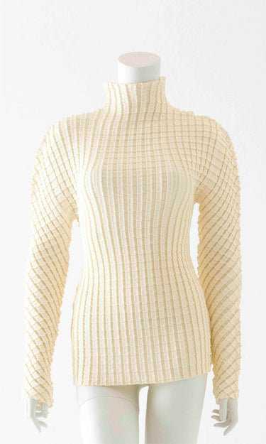 ボックスプリーツによる伸縮性に富んだ、快適にご着用いただけるするトップスです。特徴的なテクスチャーがポイントでありながら、ベーシックな形と色で様々なアイテムとのスタイリングをお楽しみいただけます。
