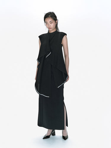 ゆるやかなドレープが美しいトップス。流れるようなひだが、優雅な印象を与えつつ、BKでモードに着こなしていただけます。