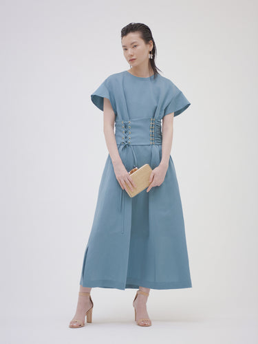 後ろファスナー開きで、両脇裾にスリットがあります。