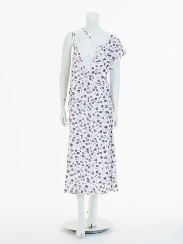 ショートスリーブとキャミがドッキングされたアシンメトリーが特徴のワンピース。
