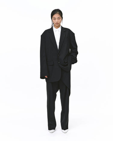 ウール梳毛を使用したきれいなシルエットでモードに着こなして頂けます。