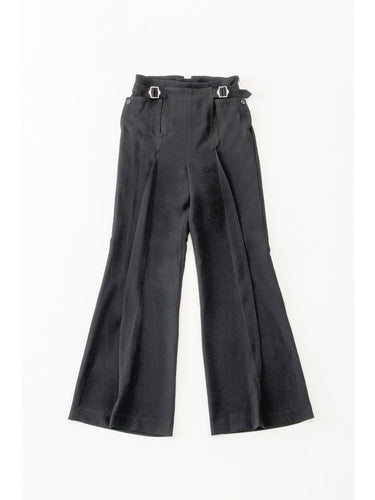 フロントのディテールが特徴的なワイドパンツ。落ち感のある上品な生地でセミフォーマルなシーンにもご活用いただけます。両サイドのアジャスターと後のレースアップでウエストサイズの調節が可能です。※手洗い、ドライコースでの洗濯が可能です。main:PORYESTER 100% , lining:PORYESTER 100%
