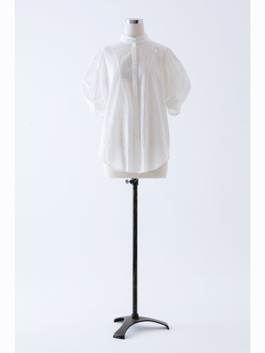 ショルダーラインとパフスリーブを繋ぐディテールが印象的なデザイン。肌離れの良い素材で通気性がよく、暑い日でも快適にご着用いただけます。見頃の切り替えとスタンドカラーでベーシックな要素も加えた一枚です。main:COTTON 100%